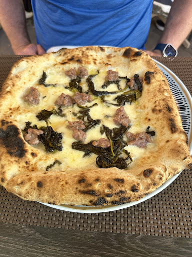 My husband and I were drooling when we saw the beautiful pizzas as we strolled by and couldn’t wait to dine here ourselves. Today we were able to have a pleasant lunch and ordered a salsiccia e friarielli pizza and a mortazza, plus a beer and a glass of house white wine. The pizza was the star of the show, truly spectacular. Both pizzas have the chewy, salty crust (not too salty—just right!) that you can only find in Italy. The Mortazza was our favorite. We are not accustomed to finishing a whole pizza each, but we did our best. I noticed other patrons enjoying aperol spritzes, so I asked for one as well and gave my wine to my husband. Everything had been great to that point. What was a bit disappointing however, was not long after my spritz was brought out—I’d taken maybe two sips—the waitress asked me if I wanted a coffee or digestive. I pointed to my drink and smiled, telling her I was just starting on my drink. A few minutes later, she came out and asked me if I was still working on my pizza—and honestly I wasn’t sure, I was just enjoying the atmosphere with my husband and nibbling the pizza. Again, my drink was still half full at that time, so clearly I wasn’t ready to leave. I had the impression she wanted us to hurry up and leave the table. Usually the customer has to ask for additional service or for the check in Italy, don’t they? So, full marks for the food and atmosphere, and one star off for staff pressuring clients to get out, which spoiled our visit to this otherwise...