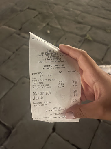 Al conto abbiamo diviso per il numero di commensali, volevano pagare 2 quote ciascuno: abbiamo dovuto fare due transazioni a testa perché “la cassa ormai aveva diviso il conto”. È la prima volta che un ristoratore ci chiede di passare 9 volte la carta pagando un numero di transazioni inutilmente.
