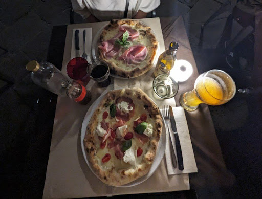Read morePizzeria ubicada a 2 pasos del Palazzo Ducale, con mesas sobre la calle, y en el primer piso. Las pizzas son estilo napolitano, hechas en horno a leña con el borde grueso, de rico sabor, pero con la masa chiclosa para mi gusto (se que hay muchos que la prefieren asi, pero yo no). Como no nos gusta sentarnos en mesas sobre la calle (aqui en Lucca hay muchos restaurants cuya "terraza" son las mesas sobre la calle donde pasan los coches), pedimos una mesa dentro y nos dieron una en el primer piso. El salos esta pintado de verde ingles, y las luces son originales pero tenues, por lo que es demasiado oscuro el ambiente. Teniamos la curiosidad de su famosa pizza volcan, y gracias a que en la mesa al lado la pidieron pudimos ver de que se trataba. La pizza volcan esta conformada por 2 partes, una pizza normal con sabores picantes, donde arriba ponen la parte del volvan, que encienden con fuego al proponerlo en la mesa. Luego del show del fuego, el camarero se lleva el volcan y el comensal puede disfrutar de su pizza picante. La cerveza es buena. Los precios de las pizzas nos han parecido caros en comparacion con otras pizzerias de Lucca. La pizza volcan 25€ y el resto de las pizzas desde 12€ en adelante. No existe parking para coches dentro de la muralla de Lucca para los que no son residentes, por lo que el parking mas cercano esta a unos 400 mts a 1 km. O sino puedes llegar en taxi o...
