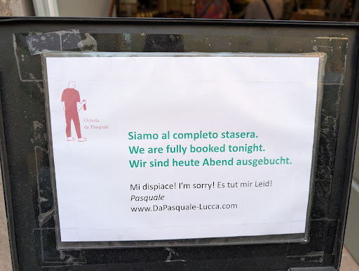 This restaurant had a sign that said “we are fully booked tonight”, and so we made sure to stop by after dinner to ask about availability for the next day. Pasquale went out of his way to try to accommodate us, thoughtfully counting the expected guests to see if he could fit two more. We’re so grateful he did!