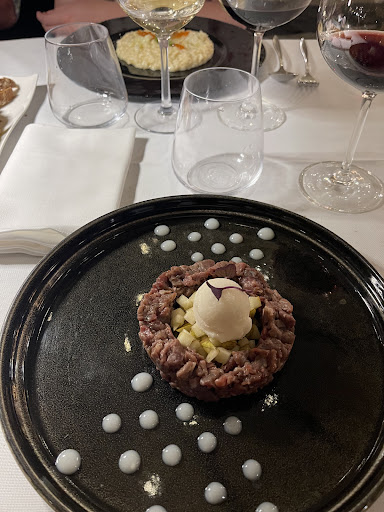 The beef tartar starter was an odd combination of what looked like cooked meat, pear and a ball of ice cream (?). Moving on to the gnocchi dish, the taste was somewhat okay but esthetically and texturally reminded me of something served in the elementary school cafeteria decades ago. Not great.