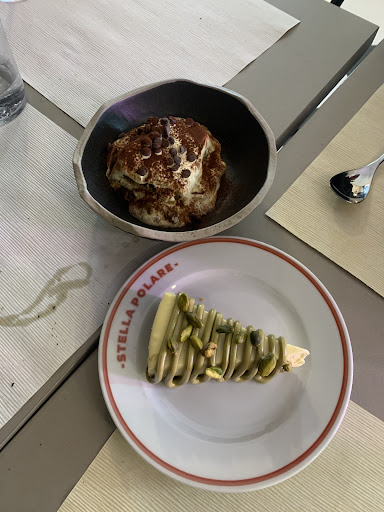 I had a very pleasant evening with my friends at the Stella Polare restaurant. the choice of dishes is very interesting, the waiters are friendly, patient, they suggest dishes that are specially made that day by the chef. The dishes we ate were the best we ate in those days in Italy, and we went through 4 cities and ate in restaurants that were rated better than this one. Cod with salad, pasta with pistachio and burrata cheese, pasta with pecorino cheese and chili, bruschetta with pecorino cheese with honey and figs (this is amazing), beef carpaccio (the best we have eaten these days - great raw material - melts in your mouth - no should be cut with a knife). The decoration of dishes and desserts is beautiful, the quantity is sufficient, moderate, everything is extra. REMARK! - the prices of the main dishes and appetizers are really acceptable considering this kind of imagination, quality, politeness of the staff, all the best, BUT, table setting 7.5 euros and green salad 10 euros? Don't do that. A wonderful evening, everything wonderful and then at the end you make donkeys out of the guests. Raise the euro price of some dishes, but you can't charge 17.5 euros for "nothing"....