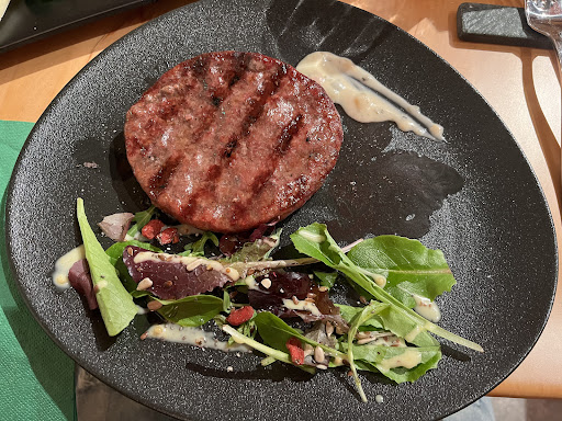 Bel locale, anche se un po piccolo. Hanno comunque una veranda coperta esterna presumibilmente usata nei giorni in cui hanno maggior affluenza di clienti. Ottimi i tagli di carni bovine, con porzioni decisamente piccole, ma la cui qualità è indiscutibile sia per sapore che per la cottura fatta in maniera impeccabile. Quelle di maiale, un po troppo grasse, almeno quelle servite a noi. Prezzi comunque superiori alla media. Menù digitali, con scansione di un qr code posto ad un angolo dei tavolini... un po scarni nelle descrizioni e privi di immagini. Tavolini un po piccoli e privi di un tovagliato......