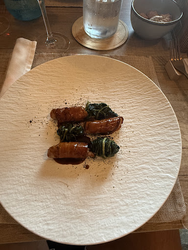 One of the top meals I had in the region during my recent trip to Italy. I even got a chance to talk to Chef Mirko and his dad a little. Their tasting menu options are flexible, so I did their choose-whichever-you-want and took 4 dishes and added a dessert. 62 euros for dinner June 2024, very reasonably priced. I tried their uovo purgatorio, the squid ink and seafood ravioli (so good!), the salted eggnog sauce on a stuffed lamb donut, the pork belly with carrot sauce and anise (most delicious plate of the night), and their chocolate and peanut tart. The only thing a bit off was the tart because when it crumbled, the entire crust fell apart and it wasn't fused to the filling, so you had to work to get a bite of everything. Nonetheless, this place is very worth it to...