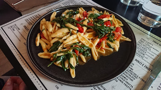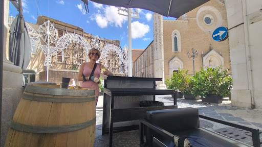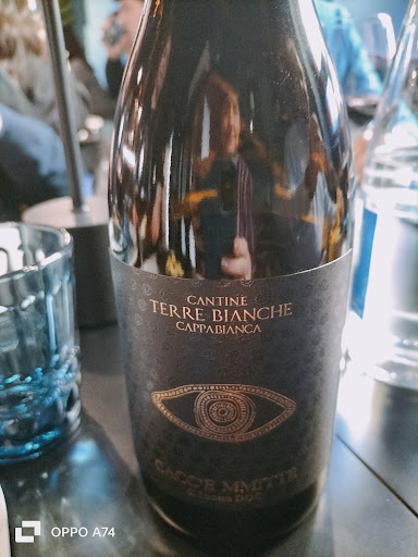 Avendo voluto provare l'ebbrezza di non prenotare per il pranzo di una Domenica di Agosto, alla fine abbiamo ripiegato per questo wine bar proprio di fronte al Duomo. Ammetto che ero profondamente scettico di poter pranzare decentemnte..e invece....Il locale, per essere un winebar, è molto carino anche se il taglio è molto più simile a un pub irlandese. Personale gentile. La presenza di piatti del giorno ha sicuramente aiutato la scelta: Cicarelli ai pomodorini e friarelli, trofie al pesto con gamberi, spaghetti cacio e pepe (menù) e puccia con hamburger (menù). Premetto che le portate sono piaciute molto a tutti ma, per quanto mi riguarda, ho trovato i cicarelli un po' sciocchi (sciapi, per i non toscani ;) ) e la cacio e pepe un pò oltre nella cottura (e per questo le 4 stelle). Le mie trofie, solo un po' troppo oleose, erano ottime, con quattro bei gamberi. Sicuramente un wine bar che con un pò di più attenzione può trovare sicuramente una sua collocazione nell'offerta culinaria di Lucera. Costo medio: 58 euro con due bottiglie di acqua e un profitterol inclusi. Un consiglio: 5 euro per due palle di profitterol è un pelo esagerato: almeno tre...