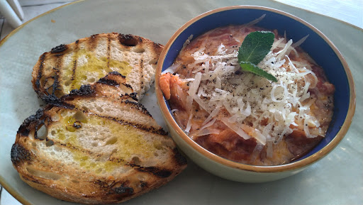 Abbiamo preso un antipasto composto da bruschette con salsiccia (buone) e un tagliere. Ci aspettavamo degli affettati degni di questa splendida regione, ma aimè non è stato così. Il primo era buono. Come secondo abbiamo preso una braciola di maiale (arrivata completamente cruda) e una braciola di vitello (cotta a dismisura). Dei due contorni, ne è stato portato al tavolo solo uno.