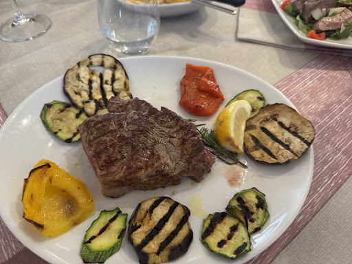 Read moreMein Mann und ich wollten gerne anlässlich seines Geburtstages einen schönen Abend mit einem leckeren Essen genießen. Leider wurden wir maßlos enttäuscht. Wir kamen kurz nach Öffnung des Restaurants an, und es waren noch nicht viele Gäste da. Wir bestellen das Filet. Ca 10 Minuten später kam die Bedienung und teilte uns auf italienisch mit, dass nur noch ein Filet da wäre. Daraufhin bestelle ich für mich die Spaghetti Sempliciotti. Da die weibliche Bedienung nur Italienisch sprach, und wir die italienische Sprache nicht wirklich beherrschen, fragte mein Mann den Haupt Kellner, ob bei dem Filet French fries dabei wären dabei wären. Was er bejahte. Das Filet wurde jedoch ohne jegliche Beilage serviert. Mein Mann fragte nochmals nach den French fries, worauf der Kellner nickte. Also wartete mein Mann mit dem Essen bis das Filet kalt war; dann kamen die Pommes. Die Spaghetti entsprachen auch nicht der Beschreibung auf der Karte bezüglich der Zutaten und schmeckt praktisch nach gar nichts, lediglich ein bisschen scharf. Die Pommes wurden mit 5 € extra berechnet, und somit war das Filet, was auch nicht besonders gut war ziemlich überteuert. Wir sind noch drei Wochen in Porto Pozzo, aber dieses Lokal werden wir auf jeden...