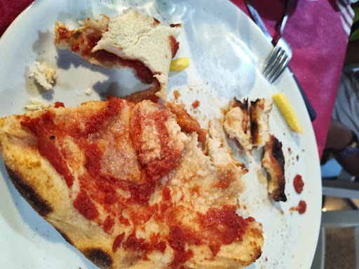 Read moreDELUSIONE Si arriva con grandi aspettative, anche leggendo le varie recensioni che narrano faville. La nostra esperienza è stata meno idilliaca. SERVIZIO LENTO: quasi un'ora di attesa, eppure i tavoli da servire non erano tanti. A parziale scusante si può dire che abbiamo ordinato una varietà di cose (chi pizza, chi antipasto e primi piatti, chi dei secondi). Però quasi un'ora senza segnali di vita, né per antipasti né per le patatine che avevamo chiesto per ingannare l'attesa... ANTIPASTI: le cozze al vino bianco davvero deludenti: accompagnate da un brodino insipido, mancava di sale, il profumo delle cozze assente ingiustificato coperto totalmente dalle cipolle (cipolle nelle cozze! Oddio...) PRIMI PIATTI: discreti gli spaghetti alle cozze (stavolta sugo e niente cipolle, menomale). Grande delusione, grandissima, per i tanto decantati scialatelli allo scoglio: qualche cozza, qualche arsella, un gambero (come annunciato nel menu) ma anche, ahinoi, uno sproposito di mediocri gamberetti surgelati, bianchi e plasticosi, insapori e inodori, a rovinare il tutto. Peccato davvero. Aumenta la sensazione di piatti per turisti, quelli da evitare. Peccato perché la pasta casereccia, non male in sè, avrebbe meritato un condimento migliore. VINO DELLA CASA: sotto ogni aspettativa. Nemmeno vermentino. Un vino vecchio e di bassa qualità. PIZZE: ahinoi, non abbiamo finito neppure quelle. Delusione. SECONDI: cotolette, già nelle premesse con bassa aspettativa...cibo surgelato o comunque industriale. IMPRESSIONE GENERALE SUL LOCALE: una gastronomia/pizzeria da asporto trasformata per l'estate in locale con servizio al tavolo. Servizi igienici ricavati in uno stanzino che si affaccia direttamente sulle cucine🙄. CONCLUSIONI: troppa attesa, cibo sotto le aspettative, piatti di punta come gli scialatielli accompagnati da un condimento deludente e ingredienti di bassa qualità. Pizze non...
