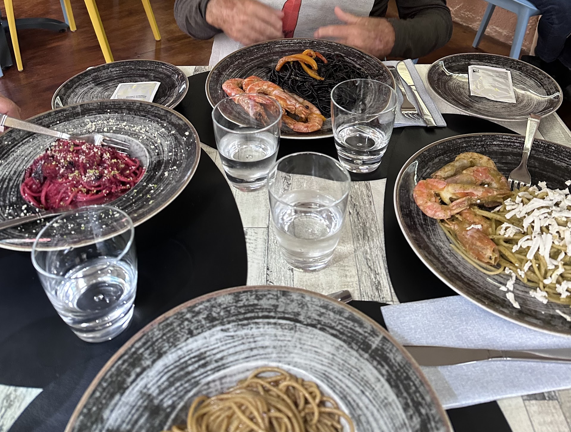 On the 29/07/2025 we ate the apetisers tartari di salmone and polpo frito, both very good. Between the salmon with the ginger and mango, and the octopus with the apple and dressing, i can’t say wich one was best. The scoglio is just perfect and very well served. The spaguetti with aglio nero is a very simple dish but very flavorful and slightly spicy, wich gives an amazing touch. The raviolis were slightly sweeted with sugar wich combines very nicely with the ricota filling. Even the breaded chicken steak (from the children’s menu) was tender. Sasha and the rest of the staff are very kind, patient and helpful. I recommend making a reservation. I genuinely hope to return...