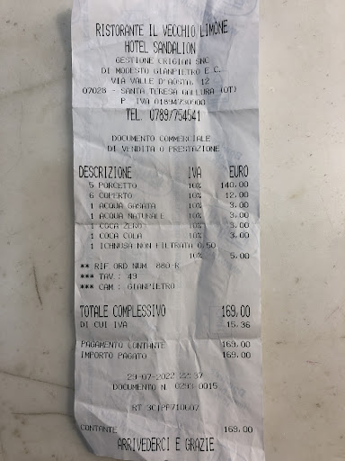 Read moreLEGGETE TUTTO - nessuna offesa Bruttissima e schifosissima cena. Ordinato il maialino di latte alias porcetto, ma mangiarlo presso questa struttura, è davvero un offesa per la Sardegna. Terra molto bella e ricca di storia. Di carne non c’era assolutamente nulla. Dopo l’attesa di un’ora, si presentava il proprietario con due taglieri ( porzione per 5 persone), patate al forno, 5 pezzi di salsiccia, 3 pezzi di costata, due zampette anteriori e per finire la testa del maialino tagliata a metà. Mancava solo il limone in bocca ed il prezzemolo sull’orecchio. Si vedeva che era un residuo di altra ordinazione. La pelle dura, secca e non si tagliava facilmente. L’ho mangiato praticamente da solo, perché gli altri 4 componenti del tavolo. hanno assaggiato solo salsiccia e patate. Chiediamo il conto è ci ritroviamo la voce di 140,00 euro di porcetto. Ma di carne non c’era assolutamente nulla Chieste spiegazioni e la risposta è stata che questo è il loro modo di lavorare. Un consiglio ai clienti: lasciate perdere. Un consiglio al proprietario: siate onesti nel proporre i piatti e se volete mangiare un po’ più decente, venite in Campania che tanto avete criticato, appena vi ho fatto notare la negatività del piatto. Altro consiglio, è vero che non si butta nulla del maiale, ma se lo fate pagare caro, circa 100 euro al kg, la testa non presentatela. Mettete un po’ più di carne. All’ingrosso, si acquista a meno di 20 euro al kg NEGATIVISSIMO per i nostri gusti. Mi auguro che per altri...