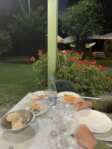 Dopo anni di vacanze in Lunigiana, abbiamo finalmente scoperto un vero gioiello: l'agriturismo La Chioccia d'Oro. Immerso in un giardino lussureggiante e curato, il ristorante offre un'atmosfera di pace e serenità. Cenare con i tavoli apparecchiati all'ombra degli alberi è un'esperienza davvero rilassante, accompagnata dal piacevole silenzio della natura. La cucina, con piatti preparati con prodotti a chilometro zero, è una vera sorpresa per il palato. Il buffet di antipasti, ricco e vario, ci ha conquistati con frittate, fiori di zucca fritti e susine dolcissime. Ogni piatto era una delizia. Abbiamo proseguito con primi e secondi saporiti e abbondanti, perfetti da condividere. Per concludere, un ottimo gelato ha chiuso in bellezza la nostra cena. Oltre all'ottimo cibo, il servizio è stato impeccabile: il personale è molto attento, cortese e mai invadente. L'agriturismo è anche un luogo ideale per le famiglie con bambini, grazie agli ampi spazi verdi e ombreggiati dove i più piccoli possono giocare in tranquillità. Il rapporto qualità-prezzo è eccellente, considerando la qualità e la generosità delle porzioni e la bellezza della location. La Chioccia d'Oro è un'esperienza culinaria e sensoriale che raccomandiamo vivamente. Noi ci torneremo...