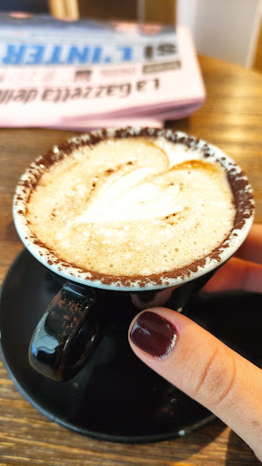 Siamo andati stamattina in questo locale carino con arredamento veramente insolito fatto con materiale di riciclo ma molto molto carino ...abbiamo preso caffe e marocchinp e un cappuccino veramente buoni...personale gentile e qualità prezzo buono...dimenticavo si può anche pranzare dal lunedì al venerdì con menù fisso a 8 euro dolce compreso...