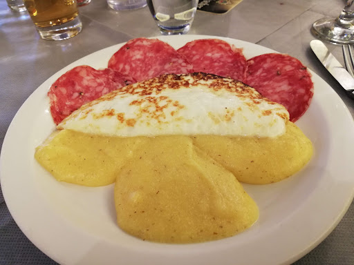 Tuttavia, questo non può giustificare la qualità del cibo che sembrava decisamente precotto e riscaldato e la rapidità nel servire i piatti uno dopo l'altro (un antipasto + primo + secondo + caffè è durato appena 30/35 minuti). Se la velocità fosse stata compensata dalla qualità del cibo non ci sarebbero stati problemi, ma ad esempio lo spezzatino di cervo era veramente amaro e aveva un sapore molto sgradevole. Lo stesso per quanto riguarda gli altri commensali al tavolo con me.
