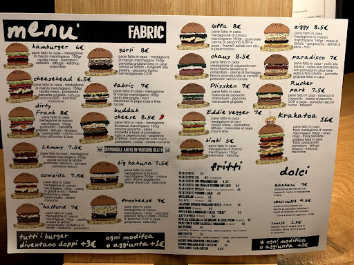 Difficilmente mi prodigo in recensioni, mangio spesso da solo in molti posti e in nessuno di questi ho mai avuto il piacere di recensire... ma il Fabric ha un posticino riservato nel mio cuore da anni ormai. I panini sono di qualità eccelsa, io adoro il cibo fatto al momento con materie locali e i panini del Fabric sono esattamente questo: enormi panini sugnosi farciti con prodotti locali e di alta qualità a prezzi adeguati se non troppo bassi. Per non parlare della birra, sarò forse eccessivo ma non ho trovato nessun pub che abbia un'offerta simile di specialità sia alla spina (ben nove spine a rotazione) sia in bottiglia. Da amante delle birre acide è per me davvero un punto a favore sapere che c'è così tanta scelta da poter dedicare sempre una spina a queste birre così di nicchia, a tal punto che non trovo un sacrificio i 30 km che mi separano da questo locale meraviglioso. Infine, ma ovviamente non per importanza, il personale: sia il ragazzo di sala che il proprietario sono gentili, disponibili, allegri, professionali e capaci di guidare il cliente ad una scelta soddisfacente sia per il mangiare che per il bere. Nulla in più da dire: complimenti sentiti...