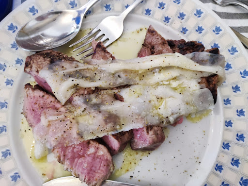 Read moreAnche se sono di Macerata, non avevo mai mangiato in questo locale che si trova in via dei velini. Avevamo voglia di mangiare della carne alla brace e cercando in internet mi è venuto fuori, tra tanti questa Braceria Tiffany. Abbiamo provato, visto che era domenica e abbiamo trovato posto. Locale carino, abbinato ad un bar. Appena entrati dalla porta del ristorante abbiamo visto subito un grande braciere e sentito subito un buonissimo odore di carne alla griglia. Fatti accomodare al tavolo abbiamo ordinato da bere e nel frattempo ci hanno portato delle fette di pane abbrustolito con sale e olio, buonissimo ideale x intrattenerci.. Abbiamo ordinato, tra i diversi primi proposti, uno spaghettone alla carbonara con cipolla di Tropea al cartoccio e tra le tante varietà di carni, tagliate e amburgher, una grigliata mista con patate al forno. Non prendiamo mai la carbonara nei ristoranti, ma mi devo ricredere, era buonissima.. L'uovo cotto al punto giusto che formava una cremina , il guanciale croccante è la cipolla esaltava il tutto.. da urlo.. La grigliata era abbondante, uno spiedino un'aletta una salsiccia una bistecca di capocollo e delle costine di maiale, peccato che erano un po' troppo cotte in un lato.. Ma il resto buono, come le patate. Personale cordiale, bagno piccolo ma pulito. Ambiente particolare con molti quadri in giro per il locale. Prezzo giusto. Voto...