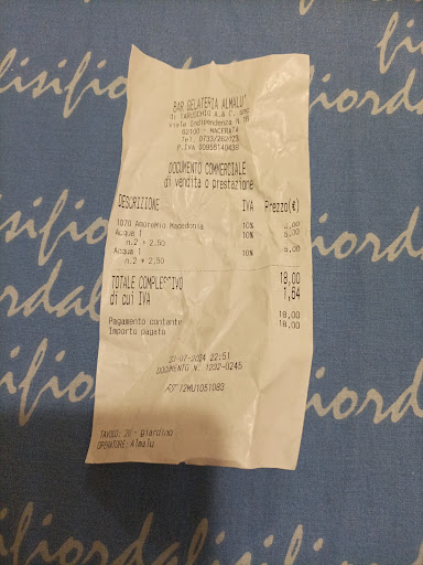 Read moreSarebbe stato tutto perfetto se non fosse che essendo in più persone e dovendoci dividere il costo di quattro bottiglie d'acqua, abbiamo chiesto il prezzo cadauna e ci è stato detto che era di 2,00 euro, per cui il totale sarebbe dovuto essere 8,00 euro, mentre ci è stata fatta pagare 10,00 euro )allego scontrino. È poca cosa però 2,00 euro qua' 2,00 euro là... ne faccio una questione di correttezza, purtroppo me ne sono accorta solo il giorno dopo...😕 bisognerebbe sempre controllare gli scontrini...