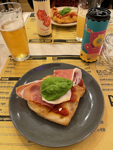 Un locale che per qualità e accortezza verso il cliente si meriterebbe qualcosa di più di quanto non abbia già raggiunto in poco tempo. Il menù è ricco di proposte per tutti (notevoli in quantità e qualità le scelte vegane), pizza gourmet ottima con materie prime di livello ed accostamenti che vanno dal classico al ricercato. C’è anche un menù stagionale, cosa da non sottovalutare per l’impegno e la dedizione che necessita. Buona scelta di vini; stessa cosa per quanto riguarda birre, gin, amari ed altri spirits (di piccole aziende locali) con cui è possibile anche formare degli spritz o altri cocktails adatti al pasto. Il servizio è stato eccellente, rapido ed appassionato (complimenti a Laura). Il locale è molto accogliente (anche se non molto grande) e arredato con cura. Una nota positiva in più: vengono organizzate dei corsi e degli incontri con degustazione di vini e non...