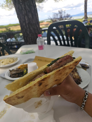 Definitely a worthwhile detour. This place is what you want if you want to experience Italy the Italian way. Very few tourists. We were puzzled at the gifantic parking lot on arrival on a US dinner schedule, arriving at 6:30. By 9 when we left it was packed on a Sunday night. The place is in the middle of nowhere with a magnificent view of the sunset over Lago Trisimeno and a huge outdoor seating area to be sure as many people as possible get to enjoy it. The food is a trip, starting with the menu on a huge easel, followed by a take-your-number thingy. You then find your spot and keep an eye on the large electronic number board and head inside into the fracass to place your order. The food comes right quick. Very decent prices, excellent grilled meats and sausages, wonderful tortas bread used for sandwiches, mixed salad comes with sliced star anise. Yum! Grab a beer or a bottle of local wine, sit with some friends, and enjoy a cheap meal in a divine location served up by a family that has been doing this for years while watching the sun go down over the lake. What...