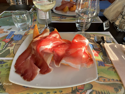 Read moreWe waren op zoek naar een restaurant en vonden dit restaurant op deze leuke locatie. Bij binnenkomst was er gelukkig nog plek, want enkele andere tafels waren al gereserveerd. We bestelden eerst een voorgerecht, dat eigenlijk bedoeld was voor 2 personen, maar het personeel deed er niet moeilijk over om er een voorgerecht voor 3 personen van te maken. We kregen allemaal typisch Italiaanse voorgerechten op één bord geserveerd. Deze waren ook erg lekker. Vervolgens kregen mijn tafelgenoten na even gewacht te hebben, hun hoofdgerecht geserveerd. Misschien is het een idee om wespenvangers op te hangen op het terras, want tijdens het wachten op eten kwamen er meerdere wespen op onze tafel af gevlogen. Maar goed, een van mijn tafelgenoten bestelde een kipschnitzel met frieten. Dat is ook letterlijk het enige dat ze kreeg. Het leek wel een kindermenu. Bij andere restaurants krijg je er vaak nog een citroen en wat groenten of sla bij om het op zijn minst een beetje leuk mee aan te kleden. Volgens mijn tafelgenoot was de schnitzel ook niet echt lekker. Ik had zelf een pizza besteld, maar deze was er nog niet toen mijn tafelgenoten al klaar waren met eten. We hebben tot twee keer toe moeten vragen waar de pizza bleef. Er liep vrij veel personeel rond, maar het maken en brengen van een pizza duurde zo lang dat ik het idee had dat het personeel eigenlijk half niet wist waar ze mee bezig waren. Na lang wachten kwam mijn pizza met de excuses van de serveerster. De pizza was oke, maar van tevoren bedacht ik me dat ik ook wel graag een dessert wilde nemen, wat ik achteraf toch niet meer gedaan heb omdat ik al zo lang heb moeten wachten op mijn pizza en het liefst zo snel mogelijk weg wilde. Bij het afrekenen kregen we nog een keer excuses aangeboden én korting, wat eigenlijk betekende dat de pizza gratis was. Wel zo netjes opgelost dus, maar ik heb hoe dan ook niet de behoefte om hier nog een keer...