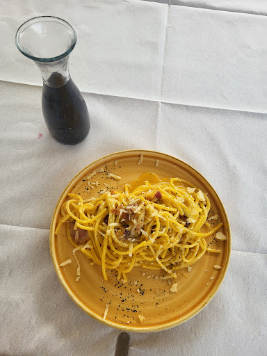 The quanciale of the dish was undercooked and rubery, i didnt finish my pasta. Because i felt bad i ordered a espresso but the coffee was disgusting also. When i paid i got the feeling they expected tip, i didnt give any.