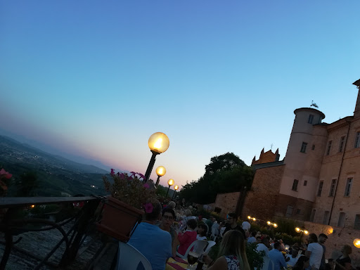 Read more27 agosto 2016 cena. Cena con mia Moglie e una coppia di cari Amici, che ringrazio poiché sono stati loro a portarci in questo magnifico posto. Locale situato sulla terrazza erbosa sotto al Castello degli Alfieri di Magliano (Sec. XVI). L’impatto visivo è notevole, specialmente nelle giornate estive potete ammirare il tramonto sulle Langhe con il Sole che cala dietro le Alpi marittime. Il parcheggio è facile da trovare, é a circa 200 metri abbastanza ampio e gratuito. L’ingresso di fianco ad una torre del Castello, dove si viene accolti, attenzione il fine settimana é meglio prenotare, noi l’abbiamo fatto ed effettivamente c’era una coda di qualche metro. Una volta passati sotto gli alberi si può andare a destra nel locale coperto oppure a sinistra passando sotto un arco di Edera si accede alla terrazza, attenzione alla scala un po ripida. Sul terrazzo, essendo all’aperto sono stati usati tavoli e sedie di plastica, avrei visto meglio qualcosa in metallo antichizzato vista zona storica. Nonostante l’affollamento, il servizio é stato rapido, una cameriera educata e simpatica ha preso l’ordine, io come Vegano ho chiesto una Pizza vegana chiedendo di mettere le verdure fresche disponibili, i commensali hanno preso rispettivamente una Napoli, Arlecchino e Tedesca. L’attesa é stata di circa quindici minuti. Da bere abbiamo scelto un Brut “Marai de Marai” e due minerali frizzanti. Le pizze tutte belle da vedere e da mangiare (ho messo anche le foto), in particolare la mia con una bella porzione di Melanzane, Zucchine, Pomodori e Peperoni. Avevo ancora fame, ed ho scelto una porzione di Patate al forno di cui ho messo la foto, davvero buonissime non oleose, cottura croccante intorno e all’interno morbidissime, lieve accenno di Rosmarino. I commensali hanno preso una Crema Catalana definita ottima e due caffè. Come digestivo, abbiamo fatto una passeggiata sopra il castello, dove si trova una chiesa (ho messo la foto), proseguendo si arriva ad un parco con panchine e fontana. Continuando a salire troviamo un soppalco sopraelevato, da cui si gode un panorama ancor più bello, noi siamo stati fortunati poiché il cielo limpido ci ha offerto una meravigliosa serata stellata. Totale 65,50 €. Vista la qualità del cibo ed il posto, direi onesto praticamente 16...