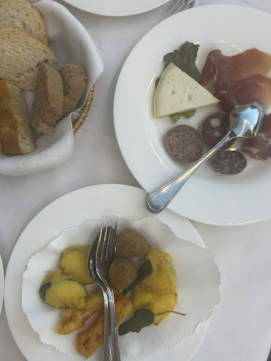 We love this osteria. Beautiful setting wonderful wine and great service. The antipasti is amazing, the pastas are amazing. The breads, omg the best focaccia I’ve ever had. The only thing that let it down for us, was the cooking of the meat. There was no nice char on the meat, it felt like the meat wasn’t cooked above the coals, but more from the side. We have tagliata a lot, and this was a v thin cut of meat and didn’t have that lovely brown appearance or char. It was still ok, just the only thing that kind of let...