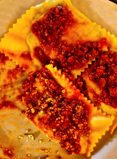 Besonders erwähnenswert, man hatte nie das Gefühl gehetzt zu werden obwohl das Restaurant ausverkauft war. Am Ende der Vorspeise fragt der Kellner nach dem nächsten Gang. Meine Frau nahm: Gnocchi mit Steinpilzen und Soße ein große Protion die locker für 2 Personen ausreicht für 12 Euro. Ich bestellte Tortellin gefüllt mit Spinat und eine Felischsoße auf für 12 Euro. Beides war über jeden Zweifel erhaben. Ein Genuss mit einer ganz besonderen Note von Guido. Am Ende des 1. Ganges ging der Weißwein zu neige. Der Kellner bemerkt es sofort und wir probierten den Vino rosso de la Casa. Auch der Rotwein war ein Traum perfekt.