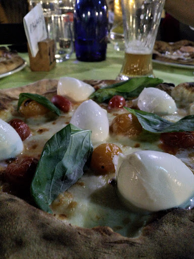 La pizza era molto buona, ho preso una Sant'Egidio con pomodori datterini rossi e gialli (gialli evitabili perché secondo me dolcissimi), bufala e bocconcini di bufala. Sebbene mi abbia un po' infastidita il sovrapprezzo di 50 centesimi per aver chiesto un po' di più di basilico, devo dire che era buona, ben cotta e saporita.