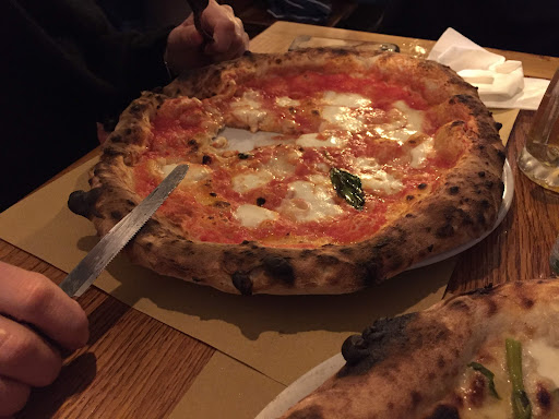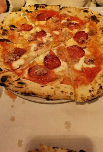 Read moreTutto sommato non si possono dare meno di quattro stelle perché il personale é efficiente e nonostante la grande sala il servizio non é poi così lento. Le pizze sono buone e sottili, forse un po imperfette nella forma ma comunque gustose. Lo stesso dicasi per le pizzette fritte. Piccola nota: i prezzi a mio avviso sono leggermente esagerati. È pur vero che in questo locale servono pizza napoletana con ingredienti campani e chi più ne ha più ne metta, ma comunque per un menù così, ci si aspetta almeno i bicchieri in vetro. Sull'ambiente che dire, parla da sé. È un mix di stili, dal dettaglio industrial al banco sospeso country, dallo stile rustico ispirato alla cultura locale al fusion newyorchese anni 20 soprattutto nella lobby subito all'ingresso. È un work in progress ma il locale ha molto potenziale e si denota dal target che in orario di punta era dai 18/20 fino ai 40/50 anni. Tendenzialmente posto comunque piacevole per trascorrere una serata...