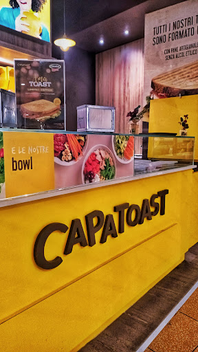 "Capatoast" é il locale che mancava in zona. Situato all'interno del centro commerciale "due mari" offre un'ampia e soddisfacente scelta di toast. Abbiamo mangiato un toast che si può definire una vera "bomba" con ingredienti freschi e di alta qualità. È stato una vera delizia per occhi e palato. Una grande caratteristica che contraddistingue questo locale è un piccolo disco che viene consegnato dopo aver effettuato l'ordine e che squillerà quando il toast sarà pronto e si potrà dunque ritirare. Personale qualificato, gentile, sorridente e disponibile. Locale pulito ed accogliente. Rapporto qualità-prezzo Ottimo. Ritornerò...