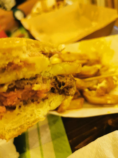 Buonino, per carità... Ma ora, dopo averlo provato, mi chiedo come il locale "Pomo" possa aver vinto sul locale "Pane e Salsiccia" (Sant'Eufemia). Anzi, questione di numeri. Solo e soltanto per quello. Ne sono più che certo!!! E sono sicuro che tantissimi, se provassero/conoscessero "Pane e Salsiccia" cambierebbero in men che non si dica la preferenza. Al pomo: patatine molto abbondanti (vabbè, 6€.......) ma molto pesanti ed un po' troppo sale, con sopra la fonduta.... Eccessiva! Copriva tutto il sapore. Hamburger "sul crudo"... Insomma, prima esperienza... Anche ultima direi! Visivamente parlando, ben presentati... Almeno quello! Pane e Salsiccia regna!! (firmo) saluti.