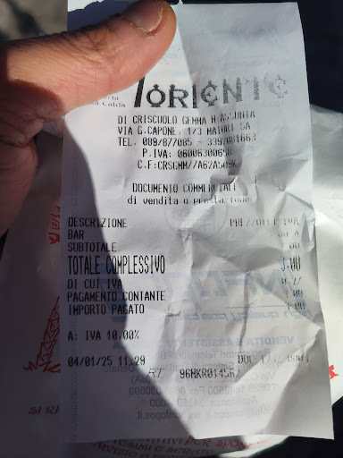 Mi sono recata al bar Oriente di Maiori il 13 agosto alle ore 8.30 di mattina. Volevo un caffè e dove andare in bagno. Siccome dovevo passare la giornata al mare avevo acquistato dei panini e una bottiglia d'acqua al supermercato di fianco al bar. Ho ordinato il caffè e mi sono recata in bagno ed ho notato che mancava la carta igienica. Ho chiesto alla signora se fosse possibile averla e lei mi ha detto che non ne aveva. Ho chiesto allora un'alternativa alla carta igienica tipo dei fazzoletti di carta ma la signora mi ha detto che non potevo usarli. Me ne sono andata indignata, prima che preparasse il caffè. Ho fatto qualche passo e sono tornata indietro perché non potevo mandare giù l'idea di quella risposta indecente. Ho detto alla signora che se non aveva la carta igienica alle 8 di mattina allora non avrebbe neanche dovuto aprire il bar, che il supermercato nel quale comprarla era a due passi e sarei potuta andare anche io a comprarla e che la risposta che mi aveva dato era inaccettabile! Lei mi ha risposto che mi sono presentata nel suo bar con alimenti ed acqua comprata da un'altra parte.....questa risposta è da MEDIOEVO!!!! HO RIBADITO CHE OTTENERE UN BICCHIERE D'ACQUA O POTER SERVIRSI DEL BAGNO NON È UN DIRITTO DEL CLIENTE MA DI OGNI ESSERE.UMANO!!!. E il suo atteggiamento è indecoroso. Alla fine l'ho invitata a leggere le recensioni di questa mattina perché sicuramente avrebbe trovato la mia!