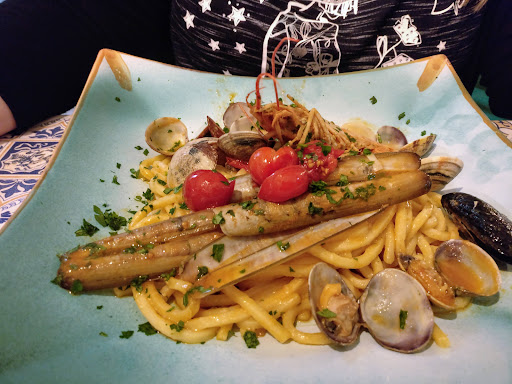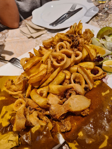 Read moreIl servizio tra i peggiori mai visti. Arriviamo e ci danno il menù. Dopo aver scelto i piatti, dopo circa 15 minuti, arriva la cameriera e ci dice che i piatti devono essere uguali tra di loro (quindi a cosa ci dai a fare il menù?). Prendiamo 5 paccheri e 4 ravioli... Arrivano tutti i piatti tranne uno. Oltre a dimenticarsi il piatto, torna la cameriera dopo 10 minuti e dice che non ci sono i pomodori. E vabbè... Poi dovevano arrivare tre porzioni di frittura mista, 20 euro a razione (gamberi, calamari e paranza). È arrivato un piatto con forse tre porzioni di patate fritte con 5/6 pezzi di calamari. Le facciamo notare alla cameriera che non era quello che avevamo chiesto. Ci dice che la paranza non è di stagione (perfetto, ma non metterla in menù allora), ovviamente abbiamo aspettato a sufficienza e le diciamo che va bene così e che ci mettiamo d'accordo con il conto.