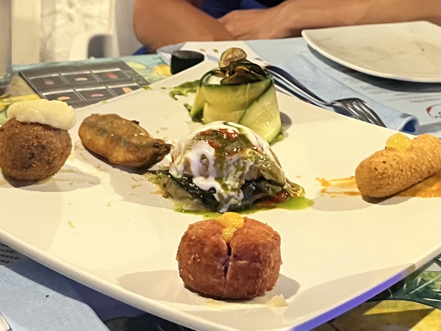 We started with the recommended starter of nine different appetisers. The only problem was that most of them were lackluster (or in case of what seemed like a fish cake, just devoid of distinct flavour), with octopus and what seemed like a take on a seafood lasagna being clear stand outs. In terms of drinks, the virgin Pina colada was subpar but drinkable. Conversely, the artisanal beer bottled in the place is very nice indeed and we can wholeheartedly recommend it.