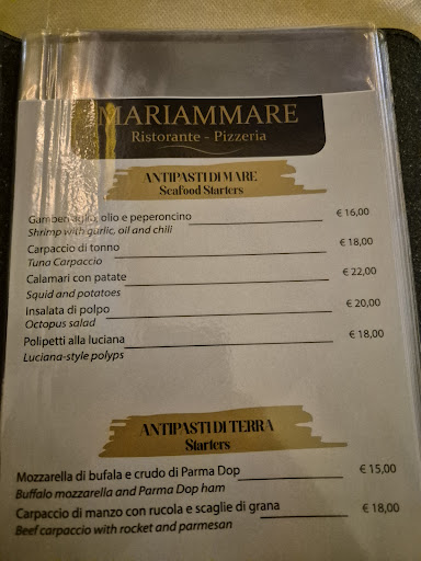 Mariammare offered my family and I the warmest welcome on our first visit. We found the atmosphere very relaxed with cool ambient music playing, but not too loud, just something to set the tone for a wonderful evening. The wine list is excellent, as are the choices of beers and soft drinks for the children.