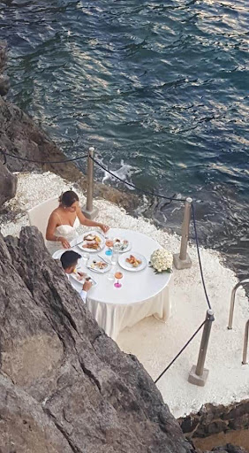Read moreWhat a horrible experience with the most unpleasant service overall in all départements. Starting from the rudest valet parking guy ever, sending us to park in the village 10min walk away under the rain while plenty of space were available. Once reached, after waiting 5 min without being noticed by storming waiters passing here and there! Finally, we managed to get seated when an oily paper bag of bread was literally thrown on our empty table with no plates or cutleries. When we requested them, the waiter rolled his eyes in the air and walked away! The sommelier lady came then and started to give us attitude once we told her that we didn’t want mineral water! After deciding to chose without her recommendation a bottle of Prosecco worth 75euro, all over sudden, she dropped the grumpy face and became slightly more pleasant. Same thing for our rude waiter, once we ordered our dish for 100euro, he became very friendly! I didn’t know or anticipated that you needed to splash your money to just be treated like a guest! The food was actually extremely basic with very poor skills in the presentation, never mind the questionable choice of ingredients combination. The view that was suppose to be spectacular, is actually invisible at night, specially seating in the back middle table of the balcony. This was the worst dinning experience I had in Italy, and trust me, I travel a lot there and a huge fan of the culture and food. Not worth a single euro we spend! I hope everyone can be aware of that...