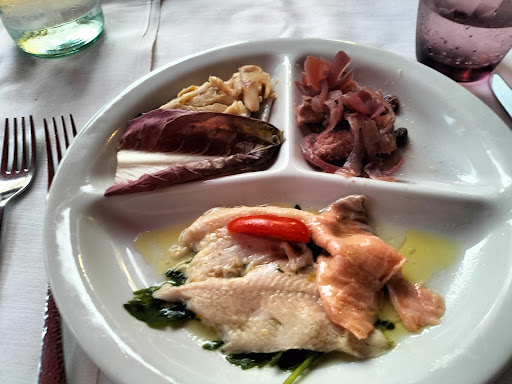 Die Servicemitarbeiter waren wirklich unhöflich, das Essen kam "im Vorbeigehen" lieblos auf den Tisch "geflogen", die beiden Hauptgänge kamen zeitlich so unterschiedlich sodass meine Frau bereits fertig war bevor ich meinen Fisch bekam. Als ich von der Mitarbeiterin mit dem Teller angerempelt wurde kam (wieder "im Vorbeigehen") ein leises "scusa" und weg war sie ohne nur einmal stehen zu bleiben und uns eines Blickes zu würdigen - aber es war kein Stress angesagt da das Haus bei weitem nicht durch die wenigen Gäste ausgelastet war.