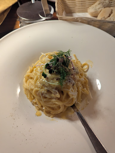 Read moreThe management of this restaurant is incredible. Best I've ever witnessed. Prices are very reasonable. Service is 5 star without a hesitation. Food is obviously fresh (it is noted in the menu if there is a dish which can contain deep frozen ingredients) and very tasty. We've been there 3 times for a dinner and took a take-away pizza twice. Everything we tried was well and properly seasoned. I recommend trying out spicy mussels in tomato sauce, gently sweet licorice risotto and creamy ricotta-and-spinach cannelloni. And also the pizza was one of the best I've had, rich on topping. And the service was fast! Pizza to take away is ready in 4 minutes in day hours, and if you dinner in place, you will be served, just at the right time, even more notable if you order multi-course dinner. Environment is pleasant, exceptionally clean and good smelling toilets. And you will get a shot of limoncello and a goodbye present after...