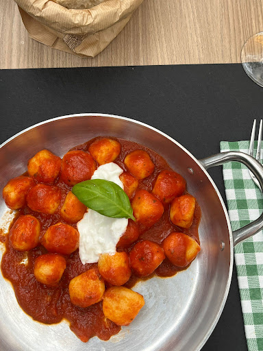 Our main issue: The portions are very small, for a rather high price point. One handful of gnocchi with one spoon (!) of burrata for 15 EUR is meager, to say the least. The same was true for the lasagna. You can expect something like 50% of a regular portion (judging from multiple restaurant visits around the area) for 100% of the price. Two pasta dishes and salad left both of us hungry.