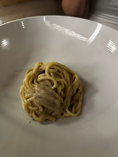 We ordered the taglioni in squid ink with prawns, duck ragu and MIKI white pizza to share. Pasta dishes were passable, expecting a sauce with the ragout but it was dry with what looked like minced duck with spaghetti noodles. 8 prawns with the taglioni, it was fine. The pizza was clearly the winner here, paper thin in the middle and bubbly at the edges, delicate and very tasty. If coming back I would just stick with the pizza. Bill came to 60 euro, with 4 peroni and a...