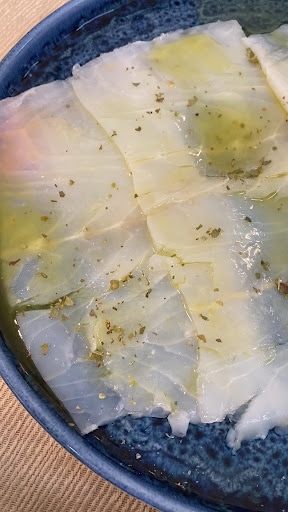 Read moreLa prima sensazione che si ha, entrando nel locale è quella di percepire immediatamente di addentrarsi in un ambiente raffinato e molto pulito, ma subito dopo l'altra importante sensazione è quella di trovarsi in un ambiente per niente snob, accogliente, sobrio e rassicurante. I menù sono chiari e dettagliati e camerieri preparati a svariate soluzioni di degustazione fuori dal menù alla carta, consentendo così di poter alleggerire le porzioni per poter avere il vantaggio di poter fare un piacevole percorso di degustazioni delle molteplici soluzioni di preparazione dello stocco. Il personale è cordiale ed efficiente e i piatti si presentano subito impeccabili all'occhio e ancor più sorprendenti al palato. Le specialità servite rappresentano in pieno quella che è la sapienza nel lavorare il famosissimo stocco di Mammola, con una sorprendente leggerezza al palato accompagnata da gusti, abbinamenti e preparazioni di primissimo livello. La varietà e la qualità dei vini sono di primissimo livello, nonché i dolci che non sono inseriti a menù tanto per, ma sono anch'essi frutto di un'accurata selezione. Si viene accolti all'ordinazione dei piatti con un graditissimo omaggio di un fresco prosecco di ottima fattura e un piccolo antipasto di stocco in pastella su crema di peperone, che già indica subito non solo la finezza della preparazione dei piatti, ma anche l'incantevole esplosione di gusto della specialità della casa e del comune stesso. A fine pasti il locale non si limita ad offrire il classico amaro o limoncello da supermercato, ma vi consegna al tavolo una bottiglia di limoncello artigianale ed un di liquore al cioccolato di pari artigianalità e supremazia, da degustare a proprio piacimento e quantità. In dulcis in fundo si scopre di pagare l'equivalente di un qualsiasi volgare ristorante da menù e piatti visti e stravisti e che peccano di particolarità e qualità. Perfetto esempio di miglior rapporto qualità/prezzo.