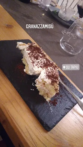 Non so se iniziare la recensione parlando del cibo, del locale o del personale. Ho l'imbarazzo della scelta perché, tutto, è stato superlativo. Vado con ordine: il locale è stato ricavato ristrutturando una vecchia casa, con corte interna, nel quartiere di Su Tapiu, da cui il nome. Gli arredamenti sono scelti con cura, alle pareti foto storiche di Mamoiada (che però, da quello che mi ha detto uno dei titolari, presto verranno sostituite perché sono esposizioni momentanee) e oggetti artigianali antichi e contemporanei. Anche i bagni (pulitissimi) arredati e decorati con cura. Noi, avendo un cane, abbiamo chiesto di mangiare all'esterno. La corte interna semplice, decorata con poche cose e con alcune piante di vite che incorniciavano le pareti. Nelle panche cuscini ottenuti con tessuti della tradizione. Passiamo ora al cibo. Tutto meravigliosamente ottimo. Abbiamo preso "Purpuzza e Patate" e Pecora in umido, contorno di verdure grigliate e patate al forno. Per quanto riguarda la pecora in umido, abbiamo fatto il bis: era speciale, fatta cuocere nel cannonau, tenera e saporita! Abbiamo accompagnato tutti i piatti con il vino prodotto direttamente da uno dei titolari: squisito! Vino biologico e a km 0. Per il dolce ci siamo fidati dei suoi consigli: abbiamo assaggiato il "Granazzamisù", una rivisitazione del tiramisù, ma con il vino bianco invece del caffè. Ero dubbiosa. Dopo averlo assaggiato ne avrei mangiato fino allo sfinimento! La panna cotta ottima, fatta da loro, accompagnata da conserve biologiche prodotte a Mamoiada. Infine menzione d'onore per i titolari: gentili, accoglienti, disponibili. Ti fanno sentire come a casa di amici. Insomma: locale...
