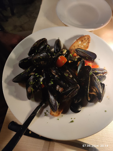 Located in an old charming palazzo in the historic centre of Manduria, the restaurant offers both indoor and outdoor dining, the latter with tables on the sidewalk of the old piazza - nice, but subject to the traffic noise that at times can be annoying. The food was excellent, we enjoyed our pasta dishes (orecchiette con melanzane e cacioricotta, and spaghetti alle vongole) and the trancio di spada alla brace that we both chose, fresh and well prepared. With shared appetiser of bruschette tradizionali, a bottle of white wine (Alice, from local verdeca grapes), water, coffee, and limoncello, the bill for the two of us was €85. Service was cordial and efficient. The overall ambiance was pleasant and welcoming, perhaps the music played in the indoor pizzeria/bar area was a little too loud and "overflowed" into the outside dining area. If you park the the blue lines section and use one of the APP services like EasyPark, be aware that the "parking spot number" that may be asked for is indicated in a little tag attached to the curb along the individual parking spot. We had a pleasant evening, and...