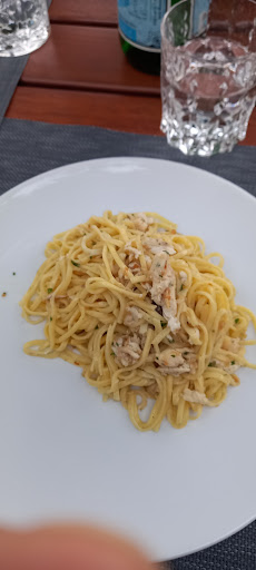 Read moreMemori di un'altra "frequentazione"del ristorante "da Rino",sempre in zona, padre della titolare, e sapendo che anche qui servivano i tagliolini con Coregone ( che tanto ci avevano ben impressionati) abbiamo scelto di provare anche di questi,oltre ad altro, s'intende!E la prova nn ci ha deluso anzi! Un pelo difficoltoso arrivare alla meta, non conoscendo bene le strade della zona, ma con un navigatore tutto va' a buon fine, anche perche' il posto e' un poco nascosto, in riva al lago. Puoi scegliere spiaggetta, giardino o pergolato, oltre chiaramente all'interno. Ma il must e' desinare in riva al lago. Posticino veramente tranquillo e molto romantico, sopratutto l'esterno. Menu' a seguire nel reparto fotografie, Fantastici i tagliolini al coregone, delicatissimi e gustosissimi una buona porzione per 2 persone. A seguire abbiam degustato del polipo con patate e branzino alla griglia, veramente deliziosi pure questi, il branzino era privo di lische ( ne ho trovate solo 4!) Cotto alla perfezione. Come contorno abbiam ordinato delle patate al forno con burro, che a mio gusto eran un po' indietro di sale. Ma e' tutto soggettivo, a vederla bene si accompagnavano con la carne del pesce che gia' naturalmente ha del salato. Il tutto accompagnato con del franciacorta e del lugana al bicchiere, veramente buoni e alla giusta temperatura. Per chiudere dolci e caffe' Una cialda calda con gelato e panna e una torta ricotta e mirtilli, decisamente sopra la media dei locali chiamati cosiddette "osterie". Il personale, molto cordiale e efficiente, preciso e veloce nel soddisfare le richieste della clientela, nonostante l'attivita' fosse piuttosto affollata. Buona la carta dei vini, e dei dopo pranzo/cena,peccato non aver potuto "approfondire" la materia, viste le note disposizioni in materia di guida! In definitiva un'ottima esperienza sensoriale, sia per la cucina, con piatti semplici ma dal sapore "vero" intelligibile, delicati e gustosi, sia dall'impatto visivo di questo scorcio di basso lago che ti si apre davant,i dandoti una sensazione di tranquillita', e dai profumi che il lago ti sa'dare. Prezzi nella norma, considerata anche la posizione. Parcheggio nelle immediate vicinanze a pagamento, ma incustodito: pargoletto. Accesso possibile anche per persone con disabilita'. Consiglio la prenotazione. E un'altro consiglio: portatevi una felpa uno scialle o un giubbino, a portata di mano perche' la vicinanza del lago, vi assicuro, si fa' sentire! Ma questo e'...