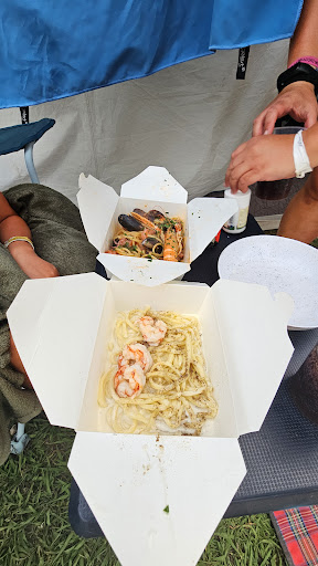 the place is full in the early evening. The staff is lost. After asking about a table for 3, we were informed that there was no problem, we would be seated soon, but another employee informed us that we had to wait 3 hours. We decided to order takeaway. we ordered 2 pastas and a pizza. decent waiting time. Tasty pizza. Seafood spaghetti delicious, full of seafood. However, tonnarelli with cheese suace, black pepper and prawns is a joke. Less than a children's portion, even if it was scraped from the pan after the previous order (I hope not from the floor;))). Photo from the attachment. Both pastes cost 14.5...
