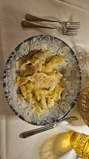 Read moreÈ stata davvero una piacevole serata! Siamo arrivati quasi per caso ma una volta varcato l'ingresso (piuttosto anonimo) si entra in una meravigliosa location! Atmosfera con musica brillante ed un ambiente di classe, tavoli con candele e soffitto con volti a crociera e mattoni a vista. Bellissimo. Il menù presenta tutti piatti interessanti (torneremo di sicuro per provarne altri) e quelli che abbiamo scelto ci hanno soddisfatto appieno, la carne e le costolette erano morbide e gustose. Personale gentile, veloce e cordiale. Nota positiva anche per il conto finale: 1 antipasto, due secondi di carne (buoni e di qualità) e due dolci, 1 bottiglia d'acqua per un totale di 54€. Secondo noi una trattoria, più ristorante che trattoria, dove vi consigliamo di andare! Vi prometto che faremo Delle foto migliori, ma davvero non pensavamo fosse un...