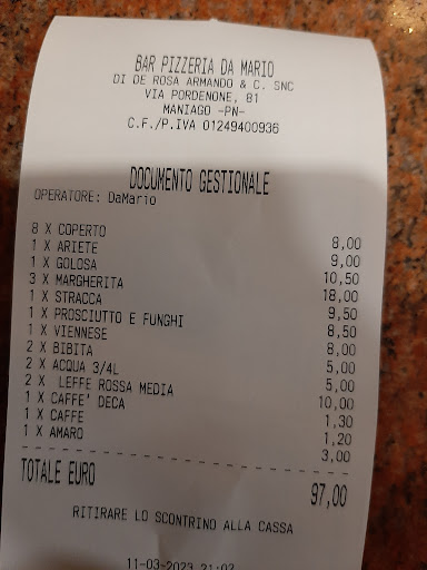 Read moreThis is by far one of the best pizza places to eat in Maniago. I tried from a friend's once and loved it. I always order. 2 × pizza americana con pancheta e salchicha, doppio impasto Update Dec 2023. Still the best...