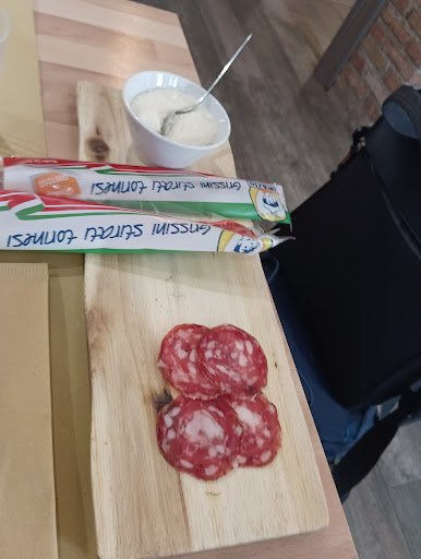Read moreSiamo andati a mangiare in questo piccolo ristorante vicino al centro di Mantova di giovedì sera dopo aver letto ottime recensioni. Abbiamo ordinato due porzioni abbondanti di bigoli (200g l'una), una con le sardelle e l'altra con speck e funghi e una bottiglia d'acqua. Appena dopo aver ordinato questi primi piatti la cameriera ci ha portato un piccolo tagliere con formaggio grattugiato , speck fresco e qualche fetta di pane come antipasto (offerto). Dopo aver mangiato i primi abbiamo ordinato due calici di bardolino e un tagliere misto formaggi e salumi che ci è stato portato accompagnato da un cestino di pane e grissini. La simpaticissima cameriera ci ha voluto anche offrire un calice abbondante del suo vino preferito per farcelo assaggiare (offerto anche questo). I bigoli erano molto buoni, soprattutto quelli con le sardelle e anche gli affettati non erano da meno. Quando ci siamo avviati a pagare con grande sorpresa ci è stato offerto anche un amaro a scelta a ciascuno. Tutto ciò a soli 34 euro per due persone ! Di questo locale ci ricorderemo la simpatia e la cordialità della cameriera Madalina, la velocità del servizio, l'ospitalità e soprattutto la generosità con cui ci hanno offerto tutti quegli extra. L'interno del locale è particolare e accogliente. Ristorante consigliatissimo !! Se ne avessimo l'occasione torneremmo...