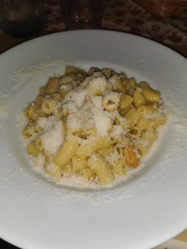 Capitati per caso in questo ristorante…4 adulti e una bambina…abbiamo ordinato 4 primi e 4 secondi di cui 3 maccheroni al sugo di cinghiale e uno con salsiccia e la zucca, 2 tagliate di manzo e 2 guancialini con polenta. Il maccherone con zucca e salsiccia non era affatto male mentre quelli al sugo di cinghiale immangiabili, avevano uno strano odore e in piu il sugo era acido/aspro anche se la titolare ha detto che fino adesso non si e mai lamentato nessuno, ma la cosa ancora più strana e che i primi sono arrivati in meno di 5 minuti da quando ci e stata presa la comanda quindi mi viene da pensare che la roba era già pronta.Per quanto riguardano i secondo, la tagliata molto buona anche se quella che doveva essere cottura media e arrivata che era ben cotta, mentre il guancialino molto buono ma veramente scarsa come porzione per i 18€ ( anche a menu fisso te ne danno dí più). Arrivati alla cassa la titolare ci ha chiesto spiegazioni di come ci siamo trovati e per scusarsi ha detto che ci avrebbe tolto un maccherone dal conto, cosa che non e successa perché una volta usciti guardando lo scontrino abbiamo notato che ci aveva fatto pagare tutti e 4 i maccheroni…per aver speso 37 € a testa ed essere andati via con la fame, io personalmente non lo...