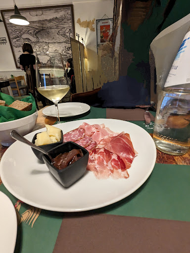 Ho avuto il piacere di gustare un antipasto eccezionale: salame sublime, le cotiche e i fagioli come antipasto, a seguire, un cotechino con lenticchie accompagnato da un Lambrusco naturale, entrambi eccellenti. Anche i broccoli preparati con maestria.